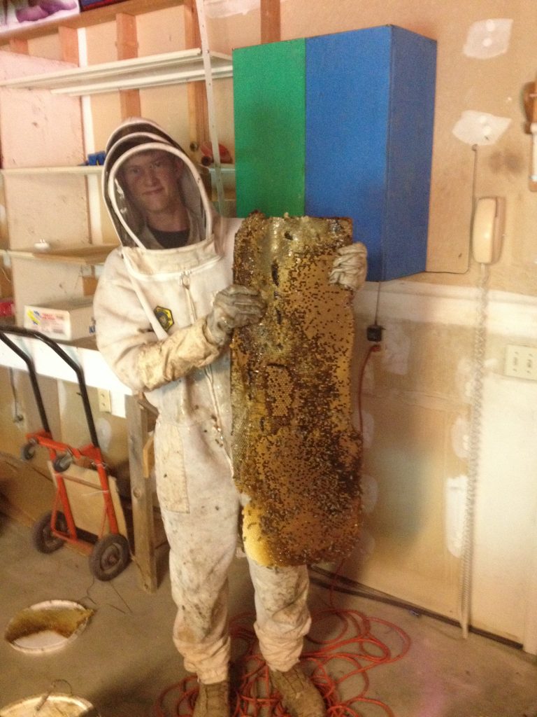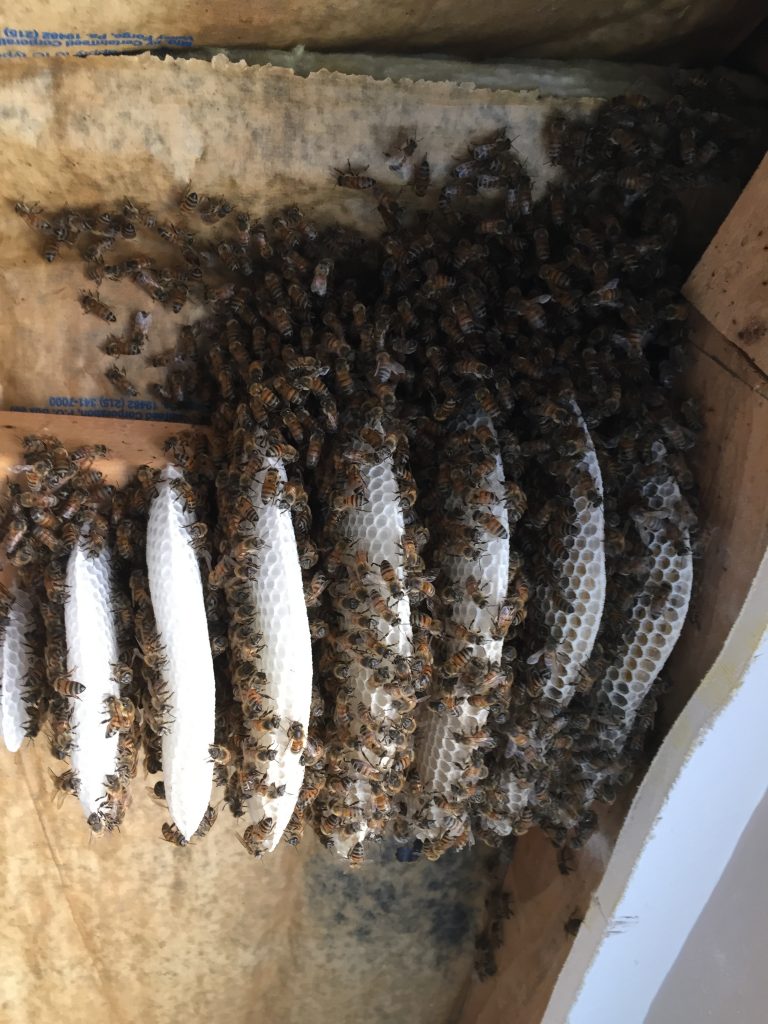 Once We Have Access To The Hive We Begin To Suck Them Up In A Specially Made “Bee Vac” That Will Safely Relocate Them Into A Bee Cage Without Damage. Once We Get To The Comb We Carefully Remove It. Most Of The Usable Pieces Of Comb Will Go Back With The Bees At Our Apiary.