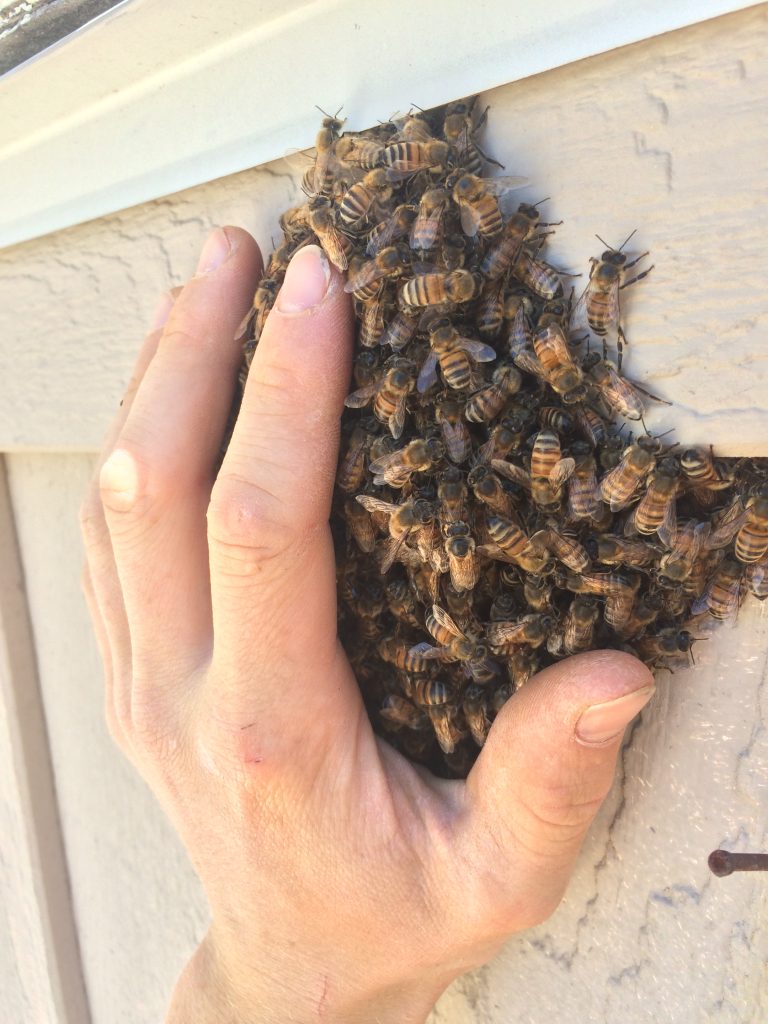 First off, we are in need of bees. Honey bees and all types of bees are very important to the Eco-system of the world, providing cross pollination between plants. Second, using chemicals to kill off a hive doesn’t really take care of the issue. It leaves all of the honey/comb that the bees have built there in their stay right where the hive was – sometimes even 100+lbs of honey and brood (the baby bees) can be left inside. With the bees dead this causes the beeswax to melt, the brood to rot, and the honey to soften, which, if in a house, it will run down the walls making a mess. All this honey mess acts as a HIGH attractant to other bees that may be looking for a home in the future. Bees like to live where another hive(s) have lived – we’ve seen it time and time again where bees moved right next to where an old hive was exterminated. It ALSO attracts other pests such as roaches, rats/mice, ants, etc. We never leave the honeycomb/brood but always take it all out to prevent future re-infestation and other problems while at the same time keeping the bees alive. Don’t call an exterminator who won’t fully take care of the situation. We are beekeepers that know bees and know how to safely remove them from your property. Call (623)882-5890 or visit our contact page to get a free analysis and schedule a appointment with a professional beekeeper.
